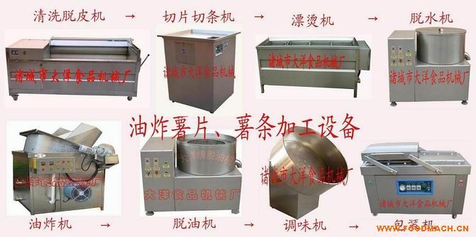 全套設(shè)備由清洗脫皮、切片(條)、漂燙、脫水、水油混合油炸、脫油、調(diào)味、包裝以及輔助設(shè)備組成。