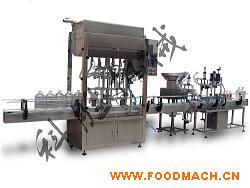 4頭1L醬料灌裝機+ZPXG-90-1轉(zhuǎn)盤式單頭旋蓋機+TB-90L立式貼標機(只貼圓瓶)+A型鋁箔封口機