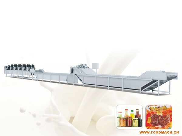 主要用于高低溫殺菌后,產(chǎn)品表面油垢、污漬的連續(xù)清洗及風(fēng)干,可按需要訂做,并可直接并入裝箱線實(shí)現(xiàn)流水化生產(chǎn)。