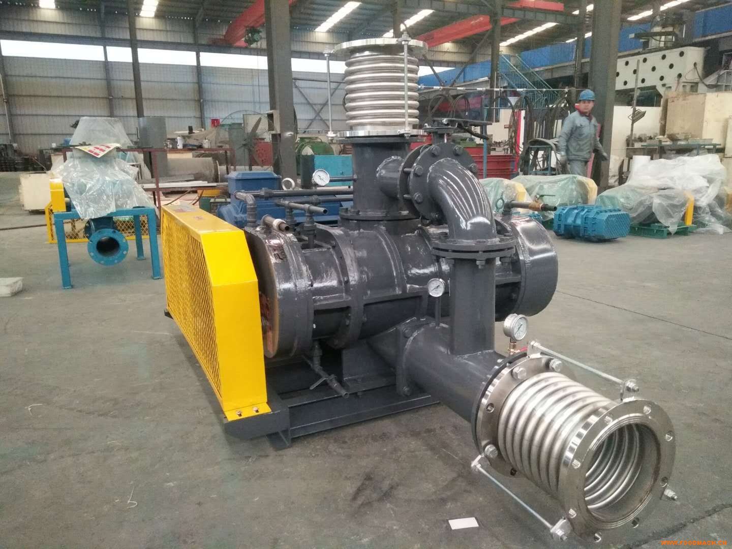 *制藥行業(yè)用RTSR400WNZ蒸汽壓縮機,蒸汽壓縮機采用合金鋼加工精密的定時同步齒輪*性固定在軸上,同步齒輪采用油箱內(nèi)的齒輪油...