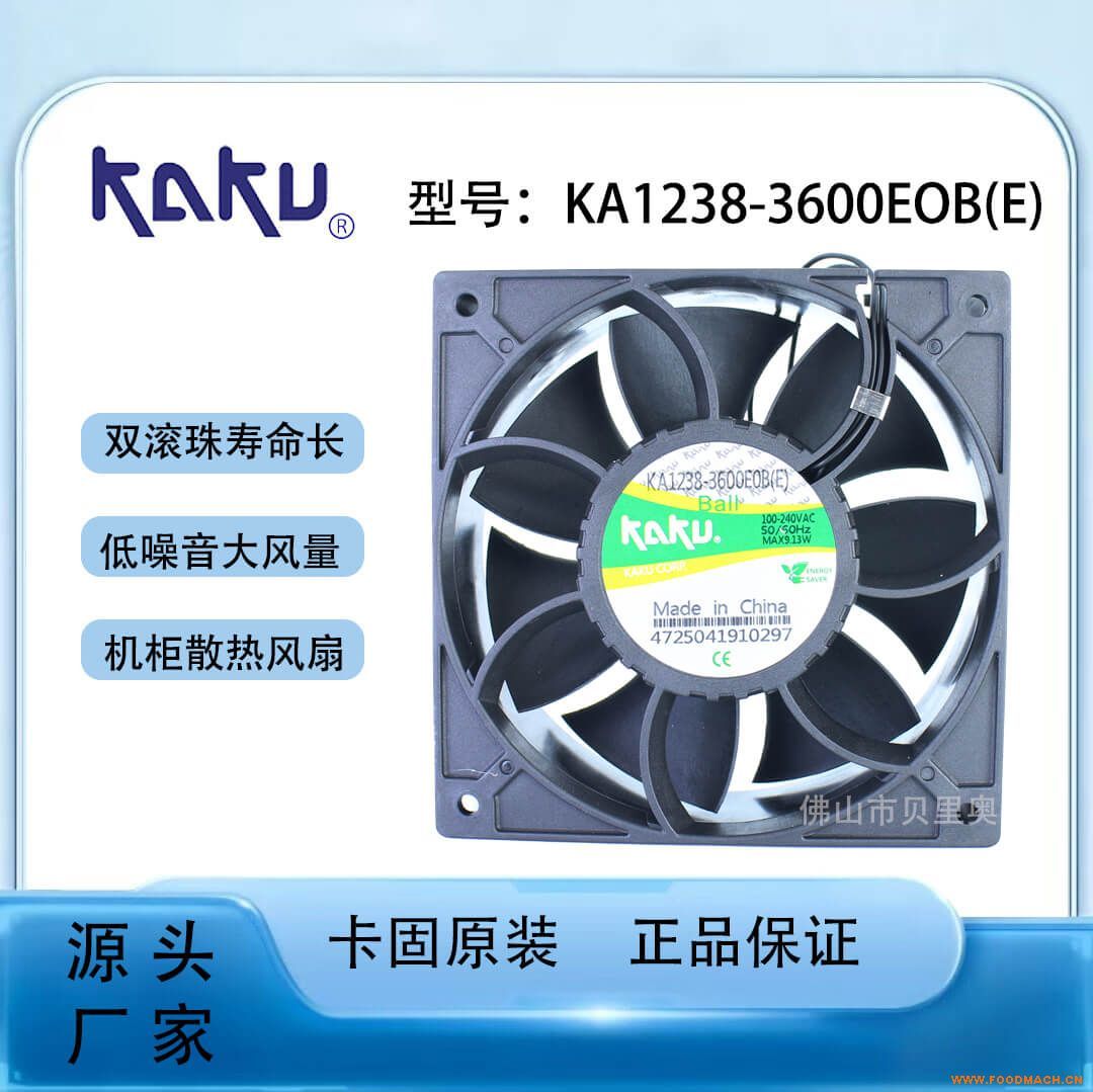 • 基礎規(guī)格:型號為KA1238-3600EOB(E),屬于KAKU卡固品牌的交流散熱風扇系列,產(chǎn)品規(guī)格對應12038尺寸(120mm×120mm...