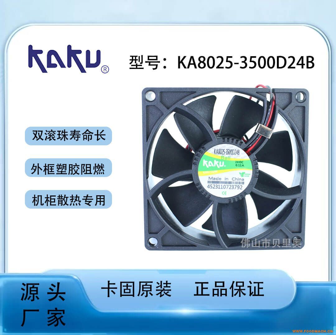 • 核心型號標識:KA8025-3500D24BL中,“8025”代表風扇尺寸為80mm×80mm×25mm,“3500”表示轉(zhuǎn)速約3500RPM,“D24”...