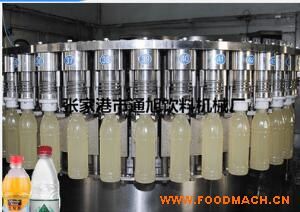 優(yōu)質(zhì)便宜RCGF果粒灌裝機(jī)設(shè)備 果汁飲料灌裝機(jī) 本系列設(shè)備集洗、灌、封為一體,適用于各種果汁飲料、茶飲料的熱灌裝生產(chǎn),同時(shí)更換少量的零部件,便可用于純凈水、礦泉水的灌裝。產(chǎn)量 4000-24000瓶/小時(shí),可供用戶選擇,采用先進(jìn)的微負(fù)壓重力式灌裝原理,灌裝快、穩(wěn)、準(zhǔn),設(shè)有完善的物料回流系統(tǒng),也可實(shí)現(xiàn)回流時(shí)獨(dú)立回氣,不與 物料接觸,減少物料二次污染及氧化。本機(jī)能滿足95攝氏度以下熱灌裝技術(shù)要求,灌裝閥及物料進(jìn)出管路無衛(wèi)生死角,同時(shí)配有CIP自清洗接口,封蓋前設(shè)有對(duì) 瓶口RO水沖洗裝置,以確保瓶口無發(fā)霉現(xiàn)象。采用磁力扭矩式擰蓋頭,實(shí)現(xiàn)抓蓋、擰蓋功能。擰蓋力矩?zé)o極可調(diào),具有恒力矩旋封塑蓋功能。整機(jī)采用人機(jī)界面觸 摸屏控制、PLC電腦程序控制、變頻器控制等先進(jìn)技術(shù)。具有供蓋系統(tǒng)自動(dòng)控制、灌裝溫度自動(dòng)檢測(cè)、物料高溫報(bào)警、低溫停機(jī)并自動(dòng)回流、無瓶不加蓋、缺瓶等 待、缺蓋停機(jī)等功能。