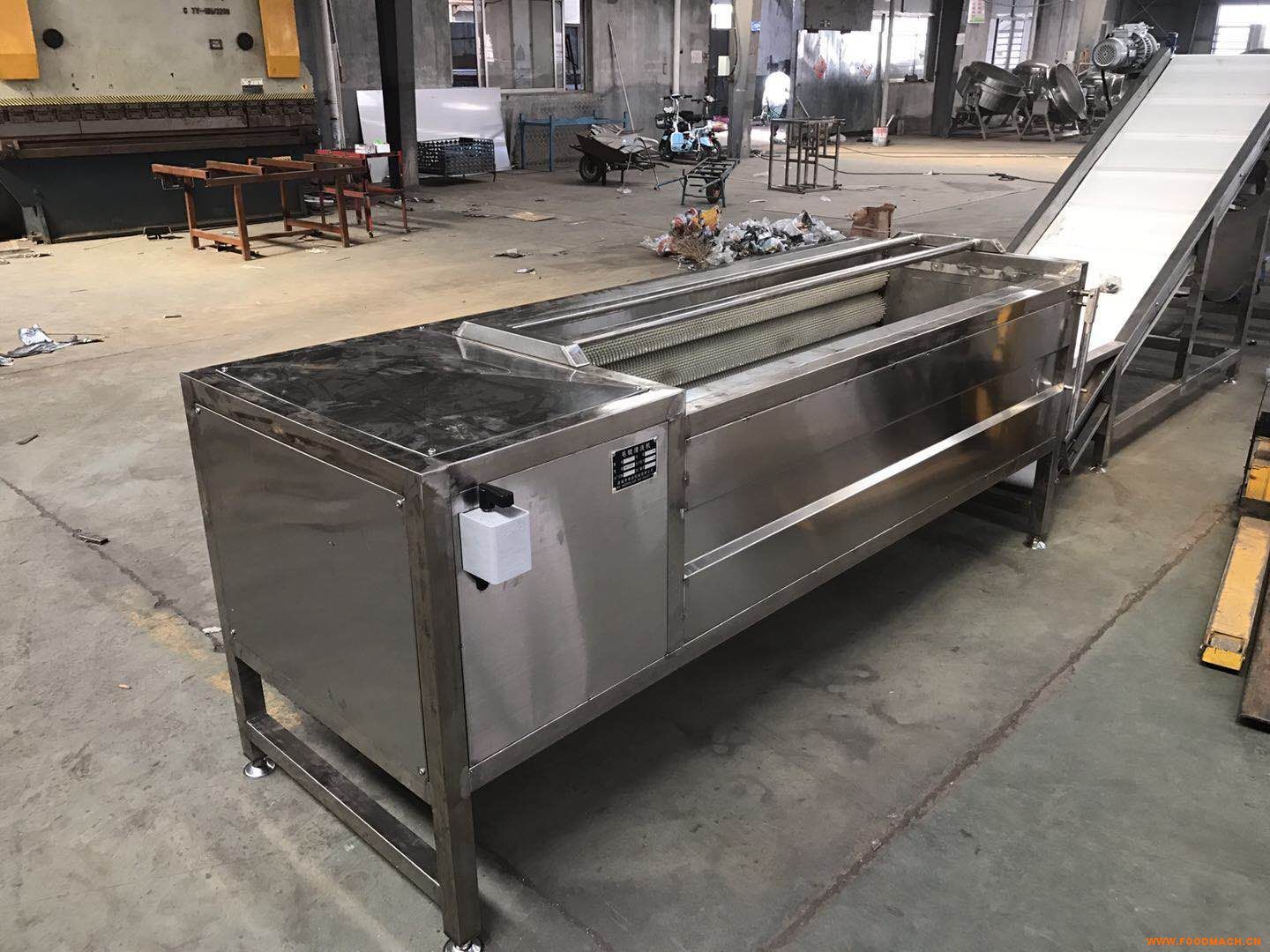 設(shè)備除電機(jī)、軸承等標(biāo)準(zhǔn)件外均采用不銹鋼SUS304/2B材料制作,完全符合出口食品衛(wèi)生要求。設(shè)備中設(shè)有氣泡發(fā)生裝置,使物料呈翻滾狀態(tài),去除產(chǎn)品表面農(nóng)殘的功效,同時(shí)可加入適量的藥劑,進(jìn)行消毒固色。漂浮物可以從溢流槽溢出,沉淀物從排污口排出,以達(dá)到清洗的目的。具有洗潔凈高、節(jié)能、節(jié)水、設(shè)備穩(wěn)定可靠等特點(diǎn)。