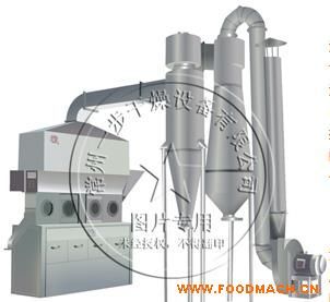 潔凈的熱風(fēng)經(jīng)閥板分配進(jìn)入床體內(nèi),從加料器進(jìn)入的濕物料被熱風(fēng)形成沸騰狀態(tài)。由于熱風(fēng)與物料廣泛接觸,增加了傳熱傳質(zhì)的過(guò)程,因此在較短時(shí)間內(nèi)就可干燥。如用連續(xù)型,物料從床體的一頭進(jìn)入,經(jīng)過(guò)幾十秒至幾分鐘沸騰干燥,自動(dòng)從床體另一頭流出。本設(shè)備一般進(jìn)行負(fù)壓操作。