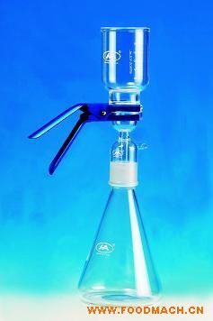 過(guò)濾瓶包括三角集液瓶(1000ml或2000ml)、砂芯過(guò)濾頭、過(guò)濾杯(300ml或500)以及固定夾。
