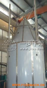 空氣經(jīng)過濾和加熱,進入干燥器頂部空氣分配器,熱空氣呈螺旋狀均勻地進入干燥室。料液經(jīng)塔體頂部的高速離心霧化器,(旋轉(zhuǎn))噴霧成極細(xì)微的霧狀液珠,與熱空氣并流接觸在極短的時間內(nèi)可干燥為成品。成品連續(xù)地由干燥塔底部和旋風(fēng)分離器中輸出,廢氣由風(fēng)機排空。
