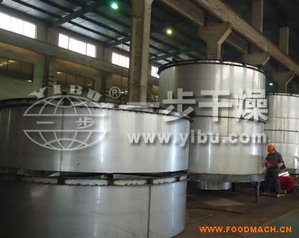 空氣經(jīng)過(guò)濾和加熱,進(jìn)入干燥器頂部空氣分配器,熱空氣呈螺旋狀均勻地進(jìn)入干燥室。料液經(jīng)塔體頂部的高速離心霧化器,(旋轉(zhuǎn))噴霧成極細(xì)微的霧狀液珠,與熱空氣并流接觸在極短的時(shí)間內(nèi)可干燥為成品。成品連續(xù)地由干燥塔底部和旋風(fēng)分離器中輸出,廢氣由風(fēng)機(jī)排空。