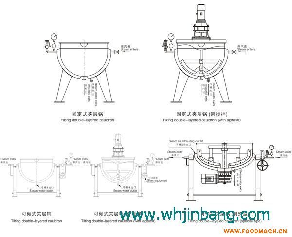 用途: 不銹負(fù)夾層鍋又名夾層蒸氣鍋,廣泛應(yīng)用于糖果、制藥、乳品、酒類、糕點(diǎn)、飲料、蜜餞、罐頭等產(chǎn)品加工,也可用于大型 餐廳或食堂熬湯、燒菜、燉肉、熬粥等,是食品加工提高質(zhì)量,縮短時間,改善勞動條件的優(yōu)良設(shè)備。 特性: 本鍋以有一定壓力的蒸氣為熱源,具有受熱面積大,熱效率高、加熱均勻,液料沸騰時間短、加熱溫度容易控制等特點(diǎn)。 本鍋內(nèi)層鍋體(內(nèi)鍋)采用耐酸耐熱的奧氏體不銹鋼制造,配有壓力表和安全閥,外形美觀,安裝容易,操作方便,安全可靠。