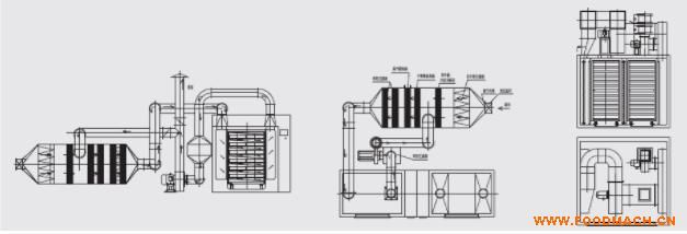 選用大風(fēng)量、高風(fēng)壓的離心風(fēng)機作為循環(huán)風(fēng)機進行強制循環(huán)通風(fēng),提高熱效率,加快物料干燥過程。