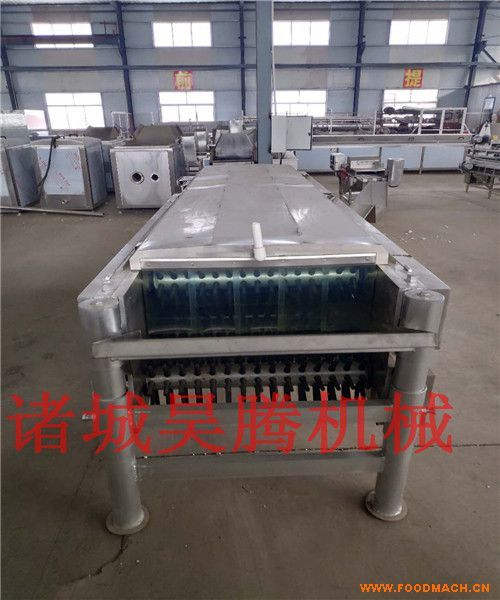 大型宰雞設(shè)備 大型雞脫毛機(jī)是以雞、鴨、鵝進(jìn)行脫毛工作的另一主要設(shè)備,為臥式轉(zhuǎn)輥結(jié)構(gòu),采用鏈條傳動,使上下兩排脫毛輥實(shí)現(xiàn)相對轉(zhuǎn)動,從而脫去羽毛.上下兩排脫毛輥的間距可以電動調(diào)整,以適應(yīng)不同雞鴨鵝大小的需要。