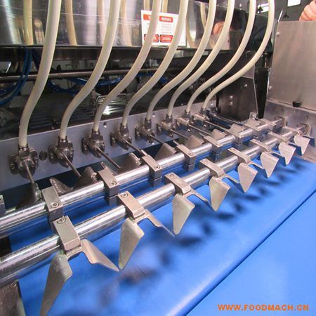 3種口味的問題,可用于面包、蛋糕和甜甜圈。注料值可調,大約5-20克/次。產品將會被自動排成一列注醬料。