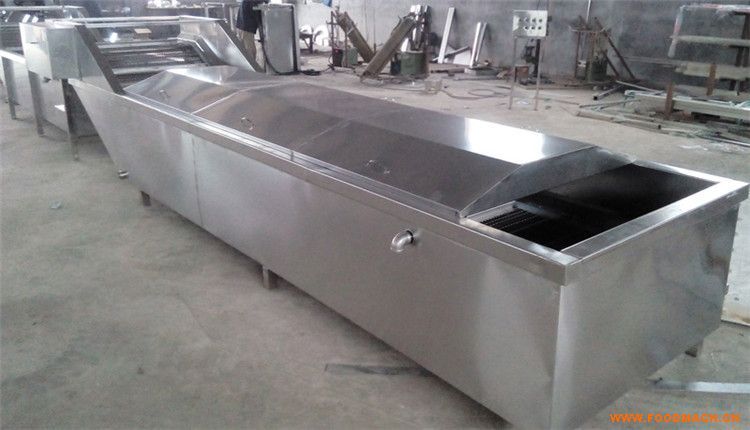咸菜絲加工設(shè)備 巴氏滅菌機的工作性質(zhì)是低溫殺菌,滅菌溫度在65度左右,該機在把產(chǎn)品內(nèi)部不利于產(chǎn)品保存的細(xì)菌滅掉以外,還能保留里面的有益菌,而且還不會影響產(chǎn)品的口感,是現(xiàn)在醬菜廠流水線的優(yōu)選設(shè)備。滅菌的時間是根據(jù)網(wǎng)帶速度調(diào)節(jié)的,如果該產(chǎn)品的滅菌時間需要長久一些,那可以把網(wǎng)帶速度調(diào)的慢一些。網(wǎng)帶電機采用無級變速電機,網(wǎng)帶運行平穩(wěn),網(wǎng)帶跟電機造音低。一般經(jīng)過滅菌后的產(chǎn)品需要在30分鐘內(nèi)進(jìn)入冷卻池把產(chǎn)品進(jìn)行冷卻,因為經(jīng)過滅菌后的包裝袋或者是瓶裝醬菜,里面的溫度會短時間內(nèi)保持65度左右,如果長時間不把里面的溫度降下來的話,里面的細(xì)菌可能會繼續(xù)滋生,可能會影響滅菌的效果,所以我們一般配置冷卻池。