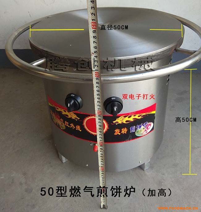 加高50型煎餅機,價格580元,整機高度50cm,方便不同客戶需求。不銹鋼機身、加厚拋光鏊面,雙紅外線節(jié)能灶頭、雙電子打火開關(guān),操作簡單方便!