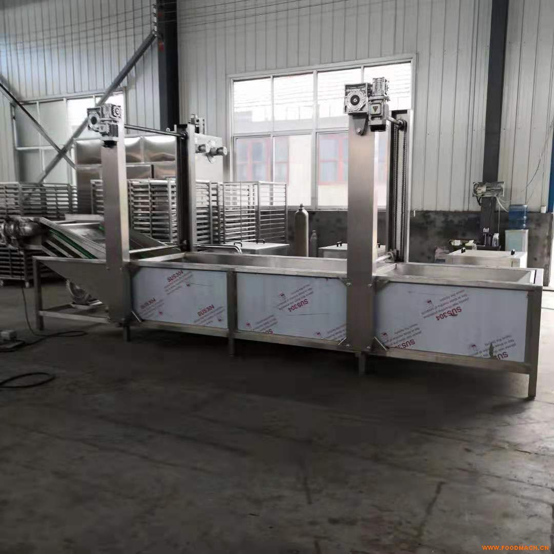 機架采用優(yōu)質(zhì)sus304不銹鋼制作,符合國家食品出口標準,流水線中各單機可根據(jù)用戶各自不同的加工特點量身定制,程度滿足工藝要求,清洗機采用高壓氣泡水浴清洗,清洗能力大,洗凈率高且不損傷物料,經(jīng)過旋翻至輸送網(wǎng)帶,在網(wǎng)帶上進行高壓水流清洗*后傳送到挑選平臺,進行公共分揀。