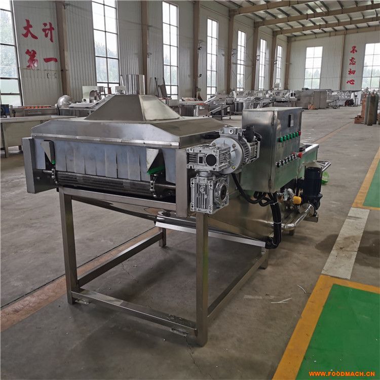 采用水浴式蒸煮、冷卻工藝,設(shè)備采用手自控溫系統(tǒng),水質(zhì)升溫快、受熱均勻、溫差小、溫度可調(diào),適合于不同產(chǎn)品的連續(xù)性殺青蒸煮加工。水浴式殺青蒸煮功能可有效的將物料均衡的混合在介質(zhì)水中,提供了對物品的殺青蒸煮效果,可調(diào)速式輸送系統(tǒng)可有效的控制產(chǎn)品的蒸煮時間,合格的完成產(chǎn)品的蒸煮工藝。