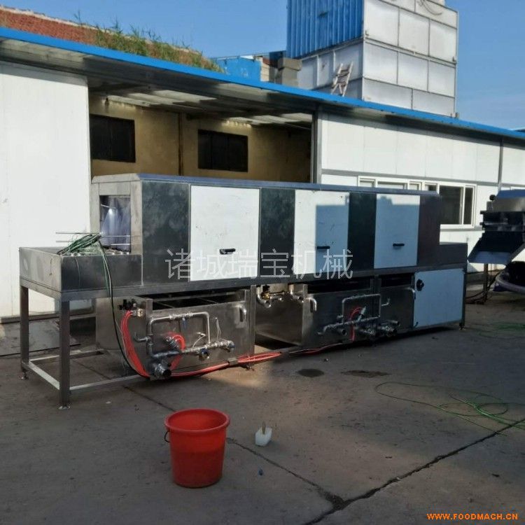 2. 設(shè)備有熱堿水噴淋段、毛刷刷洗段、熱水噴淋段、清水噴淋段、消毒水噴淋段、烘干段等幾部分組成,其中毛刷刷洗段、消毒水噴淋段及烘干段可根據(jù)客戶要求定配;