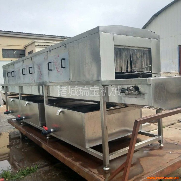 2. 設(shè)備有熱堿水噴淋段、毛刷刷洗段、熱水噴淋段、清水噴淋段、消毒水噴淋段、烘干段等幾部分組成,其中毛刷刷洗段、消毒水噴淋段及烘干段可根據(jù)客戶要求定配;