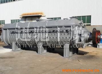 空心軸上密集排列著楔型中空漿葉,熱介質(zhì)經(jīng)空心軸流經(jīng)漿葉。單位有效容積內(nèi)傳熱面積很大,熱介質(zhì)溫度從-40℃到320℃,可以是水蒸汽,也可以是液體型:如熱水、導(dǎo)熱油等。間接傳導(dǎo)加熱,沒有攜帶空氣帶走熱量,熱量均用來加熱物料。熱量損失僅為通過器體保溫層向環(huán)境的散熱。楔型漿葉傳熱面具有自清潔功能。物料顆粒與楔型面的相對(duì)運(yùn)動(dòng)產(chǎn)生洗刷作用,能夠洗刷掉楔型面上附著物料,使運(yùn)轉(zhuǎn)中一直保持著清潔的傳熱面。漿葉干燥機(jī)的殼體為Ω型,殼體內(nèi)一般安排二到四根空心攪拌軸。殼體有密封端蓋與上蓋,防止物料粉塵外泄而充分發(fā)揮作用。