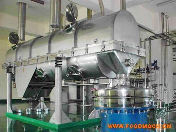 由激振力使甘露醇濕物料在空氣分布板上跳躍前進(jìn),這是一個(gè)使?jié)裎锪蠏仈S和松動(dòng)的過(guò)程。熱風(fēng)向上同濕物料換熱,達(dá)到理想的干燥效果,去掉的水份經(jīng)旋風(fēng)分離器除塵后排出,干燥甘露醇成品由排料口收集。