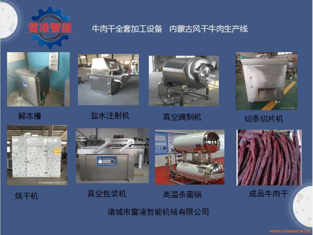 油炸牛肉干全套加工設備,牛肉干烘烤爐,牛肉干的加工工藝,香辣豬肉干設備,可做油炸牛肉干,油炸牛肉干全套加工設備牛肉干一般是用黃牛肉和其他調(diào)料一起腌制而成的肉干。牛肉干中的風干牛肉源于蒙古鐵騎的戰(zhàn)糧,攜帶方便,并且有豐富的營養(yǎng)。被譽為“成吉思汗的行軍糧”。那么制作牛肉干需要哪些設備呢?全套牛肉干加工設備有切肉機,滾揉機,油炸機,甩油機,真空包裝機,高溫滅菌鍋,風干機,具體的可以根據(jù)客戶的產(chǎn)量加工定制,有小型的也有大型的,內(nèi)蒙古油炸牛肉干全套加工設備滾揉機是生產(chǎn)牛肉干中不可缺少的設備,那么它都有哪些功能呢? 滾揉機可以使肉均勻的吸收腌漬,可以提高肉的結(jié)著力及產(chǎn)品的彈性;可以提高產(chǎn)品的口感及斷面效果;可以增強保水性,增加出品率;可以改善產(chǎn)品的內(nèi)部結(jié)構(gòu),節(jié)能。整機采用不銹鋼制造,結(jié)構(gòu)緊湊,滾筒兩端均采用旋壓式封帽結(jié)構(gòu),大的增加滾筒內(nèi)的摔打空間,使?jié)L揉產(chǎn)品的效果均勻,噪音小,性能可靠,操作簡便,使用效率更高。在食品行業(yè)中,廣泛應用于食品攪拌,真空腌制,能夠使腌料浸入到肉中,從而使口感得到質(zhì)的提升。新型滾揉機在原有技術基礎上大膽創(chuàng)新,采用制冷型,恒溫型真空滾揉機,解決了食品因高溫,溫差變化所產(chǎn)生的肉質(zhì)品口味變壞的問題,進一步解決了廣大食品廠的需求。