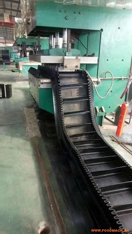 大傾角尼龍波紋擋邊帶, 是由基帶、擋邊、橫隔板3部分組成。擋邊起防止物料測滑撒落的作用。為便于繞過滾筒,檔邊設(shè)計成波紋狀;橫隔板的作用是承托物料,為了實現(xiàn)大傾角輸送,采用T型TC型。檔邊和橫隔板是用二次硫化的方法與基帶連接的,具有很高的連接強度。用于輸送易散落的粉狀、粒狀、小塊狀、糊狀及液態(tài)狀物料。其特點:適用于傾角0°~90°散裝物料的輸送;具有使用范圍廣、占地面積小、無轉(zhuǎn)運點、減少土建投資、維護費用低、維修容易輸送量大連續(xù)化、高效率、大傾角運輸,操作安全,使用簡便,,運費低廉,并能縮短運輸距離,降低工程造價,節(jié)省人力物力等特點;解決了普通帶和花紋帶所不能達到的輸送角度;還可根據(jù)使用環(huán)境,設(shè)計成完整、獨立的輸送系統(tǒng),避免了間斷輸送和復(fù)雜輸送的提升系統(tǒng)?裳厮、傾斜、垂直和變角方向輸送各種散裝物料,從煤、礦石、沙子到化肥和糧食等。物料粒度不限,可從很小的粒度到400mm的大粒度,輸送量可從1立方米/小時到6000立方米/小時。