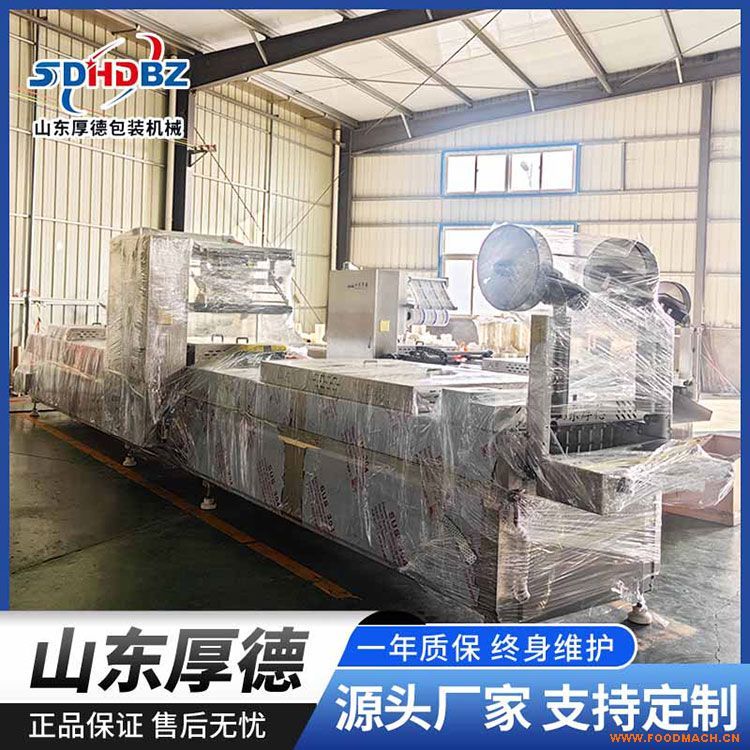山東厚德全自動(dòng)拉伸膜包裝機(jī)是在普通真空包裝機(jī)的基礎(chǔ)上發(fā)展起來的新一代真空包裝設(shè)備,它能夠?qū)⒗炱ぜ庸こ蛇m合產(chǎn)品的形狀后用復(fù)合片膜附在上面,抽真空后封口,*后分割成獨(dú)立產(chǎn)品的一種設(shè)備。我公司引進(jìn)國外先進(jìn)技術(shù)研制開發(fā)了全自動(dòng)連續(xù)拉伸軟硬盒真空充氣包裝機(jī),性能完全代替進(jìn)口。全自動(dòng)拉伸膜包裝機(jī)適用于各種相對(duì)規(guī)則的食品、肉制品、海產(chǎn)品、冷卻肉、蛋類、休閑食品、醫(yī)療用品、電子元件等。