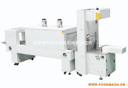 需包裝的瓶或盒,按包裝規(guī)格要求,人工擺放到推瓶撥叉之間的推瓶平臺上,以推瓶板為后基準,兩撥叉為左右基準。放妥后手離開推瓶板運動區(qū)間,按動啟動按鈕,推瓶機構自動推瓶過封切線,停留,待壓瓶機構動作壓住瓶頭后推瓶氣缸后撤回到原位,讓出擺瓶空間繼續(xù)下一包擺瓶。同時封切機構開始動作,壓膜氣缸向下動作,壓住薄膜,然后熱封切刀向上動作,完成封切功能后所有氣缸回原位。人工繼續(xù)擺放下一包包裝物,擺放好后啟動按鈕,待第二包推過封切線時同時把*包已封切好的包裝物推到熱收縮機輸送網帶上,網帶帶動包裝物進入收縮烘道,在烘道內,不斷循環(huán)的熱風吹到包裝物表面的薄膜上,使薄膜自然貼和到包裝物上,完成烘道收縮過程,包裝物離開熱風烘道進入冷卻通道,在冷卻風機的作用下冷卻到室溫后輸送到臨時載貨架上。注意人工搬下架只能在臨時載貨架尾端進行,保證包裝膜充分冷卻。上述過程連續(xù)重復進行就實現了包裝半自動化。