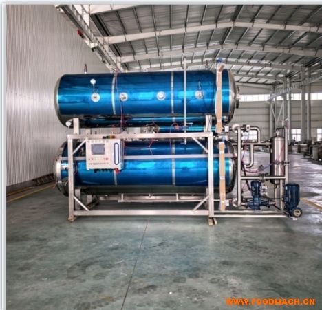 3、開啟平衡裝置,熱水罐內(nèi)的殺菌工藝水通過水泵抽到殺菌釜內(nèi),到達(dá)工藝設(shè)定液位;