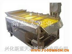 本機(jī)采用全不銹鋼制造,使用30支不脫毛、高級(jí)衛(wèi)生級(jí)毛刷分前上后下雙層排列。配有循環(huán)水噴淋,水過濾網(wǎng),采用無級(jí)調(diào)速電機(jī)。毛刷拆卸方便容易清洗。在使用中利用一次翻身進(jìn)行兩面沖洗,將食品原料中的碎丁末及毛發(fā)去除。產(chǎn)量600-1000公斤/小時(shí)。