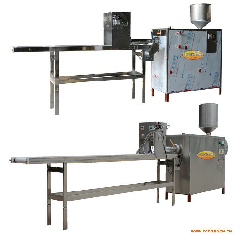 天陽自動成型餌塊機(粑粑餅子機)機電一體化設計,性能穩(wěn)定,操作簡單,由電熱熟化系統(tǒng)、螺旋推進擠出系統(tǒng)、皮帶輸送機和電氣控制自動切斷機組成,采用*的攪龍推揉結構代替?zhèn)鹘y(tǒng)手工搡搗過程,通過電加熱電子自動控溫熟化方式,使米漿在一定的溫度下受熱變性粘性增加,再由螺旋推進器擠壓聚合成型,出機即熟,節(jié)省能源耗電少,生產過程*,安全衛(wèi)生,解決了手工制作工序復雜、費時費力的問題。