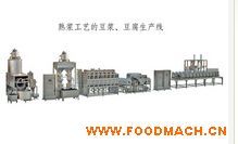 設(shè)備功能:設(shè)備適用于熟漿工藝自動(dòng)連續(xù)生產(chǎn)豆?jié){,浸泡過(guò)的濕豆自動(dòng)輸送到磨漿機(jī),磨漿機(jī)具有水流量、豆流量自動(dòng)控制功能,有自動(dòng)控制豆?jié){濃度的功能,轉(zhuǎn)子泵將生沫糊定量輸送到連續(xù)煮漿機(jī),連續(xù)煮漿機(jī)自動(dòng)控制煮漿溫度,熟漿擠壓機(jī)將煮過(guò)的豆沫糊擠壓分離為豆?jié){和豆渣,豆?jié){經(jīng)過(guò)熟漿篩過(guò)濾后進(jìn)行后續(xù)加工為豆制品,豆渣吹渣機(jī)自動(dòng)輸送至豆渣倉(cāng)庫(kù)。該生產(chǎn)線全部生產(chǎn)過(guò)程電腦自動(dòng)控制,可連續(xù)自動(dòng)生產(chǎn)豆?jié){