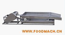 瀝水篩用于過(guò)濾篩選濕豆,去除大豆表面的污物。平篩和電機(jī)由偏心機(jī)構(gòu)連接,置于軌道上。平篩下面有接水槽,可外排污水。平篩上部裝有噴淋裝置,沖洗黃豆浸泡后表面產(chǎn)生的酸性物質(zhì)等雜質(zhì),從而進(jìn)一步提高豆?jié){品質(zhì)