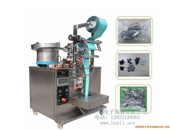 雙盤計數螺絲五金包裝機|糖果、藥丸、小餅干包裝機可用于包裝食品,電子元件,小五金配件等,如:糖果,魚皮花生,巧克力豆,花生仁,干果,小餅干,藥片,藥丸,以及不規(guī)則物品,如:釘子,螺釘,螺栓,螺母,螺絲,電子元件等。