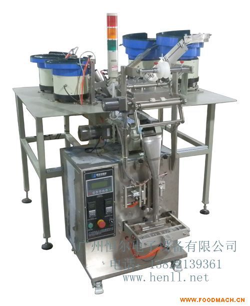 四盤五金螺絲包裝機(jī)|小餅干、糖果、藥丸包裝機(jī)可用于包裝食品,電子元件,小五金配件等,如:糖果,魚皮花生,巧克力豆,花生仁,干果,小餅干,藥片,藥丸,以及不規(guī)則物品,如:釘子,螺釘,螺栓,螺母,螺絲,電子元件等
