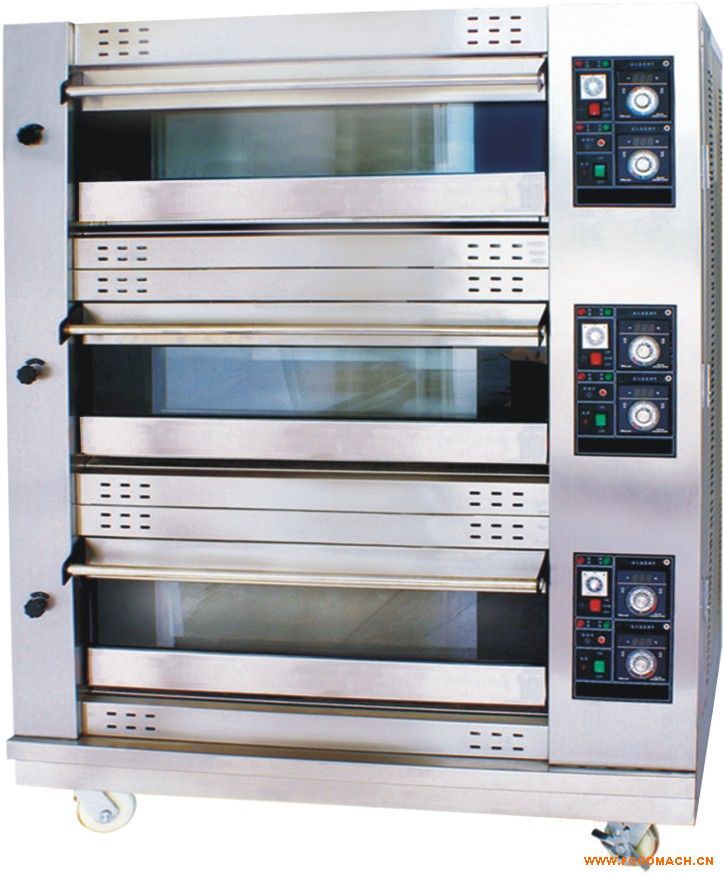 3層9盤(pán)燃?xì)饪鞠涫俏宜揪C合了國(guó)內(nèi)同類(lèi)產(chǎn)品的優(yōu)點(diǎn),經(jīng)多次實(shí)踐、改進(jìn)、研制而成。具有款式新穎、色彩鮮明、結(jié)構(gòu)合理、操作方便及升溫快、保溫好、熱力勻、效益高、免增容、省電費(fèi)、安全、可靠、節(jié)能等特點(diǎn)。采用分層各自獨(dú)立控制結(jié)構(gòu),每一層的底火及面火均可以控制,因而烘烤質(zhì)量特別理想,本產(chǎn)品主要用于烘烤面包及餅食等,是中小型糕廠(店)及工礦企業(yè)機(jī)關(guān),學(xué)校等單位食堂*理想的設(shè)備。