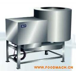 用于雞爪切割后的去黃皮工作,通過電機帶動甩盤轉(zhuǎn)動,使雞爪在筒內(nèi)螺旋運動,從而實現(xiàn)脫皮要求。