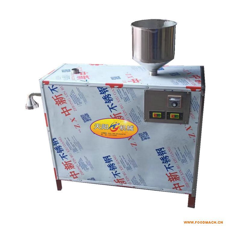 自熟湯子機(jī)采用恒溫蒸漿熟化成型新工藝,替代手工攥條,減輕了勞動強(qiáng)度,磨好的玉米漿經(jīng)水浴箱熱水蒸煮熟化,螺旋推進(jìn)器推揉擠壓聚合而成,出機(jī)即熟,一次成型,無須下鍋。產(chǎn)品厚薄寬窄、粗細(xì)扁圓等規(guī)格可根據(jù)需要任意更換模具調(diào)整。