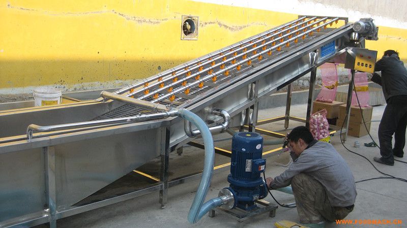 本清洗機別名;異物去除清洗機。主要采用鼓泡,沖浪,毛輥,毛刷或滾筒和提升處噴淋清洗。通過高壓噴淋,毛刷清洗,氣泡清洗三種方式將產品表面的雜志處理干凈;機體內有四根大毛刷,將物料下壓通過可以去除長毛發(fā),網帶提升處有噴淋管,將物料用水清洗干凈。