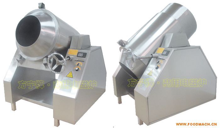 電磁自動旋轉炒爐采用*先進的電磁感應渦流加熱原理。它利用電流通過繞制在加熱器外壁的線圈產生磁場,磁場遇到鐵質鍋具時即產生無數小渦流,使內部鐵分子劇烈運動從而自行高速發(fā)熱,達到加熱物體的目的,電磁旋轉炒鍋作為食品加工的一種新型設備,它打破了傳統(tǒng)的明火及夾層鍋(不用先加熱導熱油;也不用先燒開了水再用蒸氣加熱)方式,熱效率高達95%,節(jié)能環(huán)保,無明火,更安全,沒有余熱,可實現*控溫,可用于加熱水,油,化學、顏料,食品或者烘干設備等,使食品在加工過程中做到真正的無毒、*;機器(鍋體)可連續(xù)使用10年或以上,可調節(jié)正轉反轉,轉速快慢,可實現無人值守自動翻炒,可傾斜倒料,加熱均勻,不糊鍋。以其操作簡單、方便;加熱快、效率高、高效節(jié)能并且無明火、無煙、無廢氣、*;安全、環(huán)保、美觀、耐用等優(yōu)點著稱。