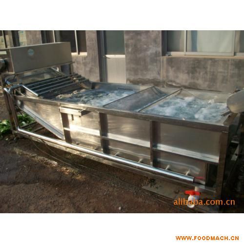 蔬菜清洗機(jī) 一、 氣泡翻浪清洗機(jī)的特性及用途 1、設(shè)備除電機(jī)、軸承等標(biāo)準(zhǔn)件外均采用不銹鋼SUS304/2B材料制作,完全符合出口食品衛(wèi)生要求。設(shè)備中設(shè)有氣泡發(fā)生裝置,使物料呈翻滾狀態(tài),去除產(chǎn)品表面農(nóng)殘的功效,同時(shí)可加入適量的藥劑,進(jìn)行消毒固色。漂浮物可以從溢流槽溢出,沉淀物從排污口排出,以達(dá)到清洗的目的。具有洗潔凈高、節(jié)能、節(jié)水、設(shè)備穩(wěn)定可靠等特點(diǎn)。 1、適用于:蔬菜、水果、水產(chǎn)品等顆粒狀、葉狀、根莖類產(chǎn)品清洗、浸泡、殺菌消毒及固色等。 2、本機(jī)輸送部分采用SUS304不銹鋼網(wǎng)帶,運(yùn)行平穩(wěn)、使用壽命長等特點(diǎn),符合食品衛(wèi)生要求。 3、操作簡單,維修方便、方便連線 二、 產(chǎn)品規(guī)格及性能參數(shù)
