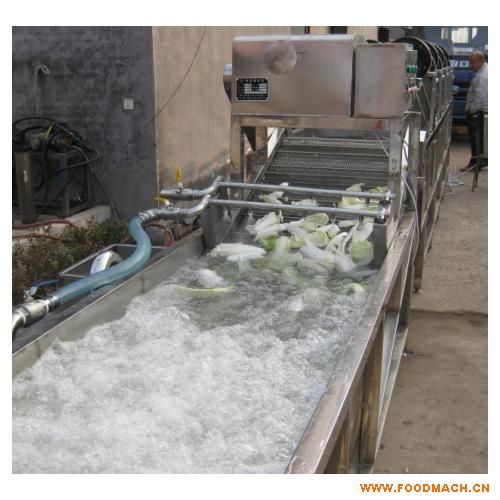 鴨頭鼓泡式清洗機,本機特點:本機除電機、風機、循環(huán)泵、毛刷、膠皮以外,其他均采用SUS304材料,符合國家食品行業(yè)使用標準。本機采用鼓泡、沖浪、毛刷和提升處噴水清洗。水箱有四根大毛刷,一側有去雜循環(huán)水箱,所有雜物經此水箱過濾去雜,其中網帶提升處為凈水噴淋。