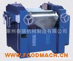S150型三輥研磨機(jī)有三個滾筒安裝在鐵制的機(jī)架上,中心在一直線上?伤桨惭b,或稍有傾斜。是通過水平的三根輥筒的表面相互擠壓及不同速度的摩擦而達(dá)到研磨效果。鋼質(zhì)滾筒可以中空,通水冷卻。物料在中輥和后輥間加入。由于三個滾筒的旋轉(zhuǎn)方向不同(轉(zhuǎn)速從后向前順次增大),就產(chǎn)生很好的研磨作用。物料經(jīng)研磨后被裝在前輥前面的刮刀刮下。