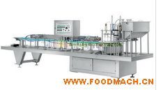 自動操作流程:人工放瓶→自動成型整位→自動灌裝→自動剪切沖蓋→自動封口→出瓶等。該機采用鋼鐵與不銹鋼制造,結構簡單,操作容易。