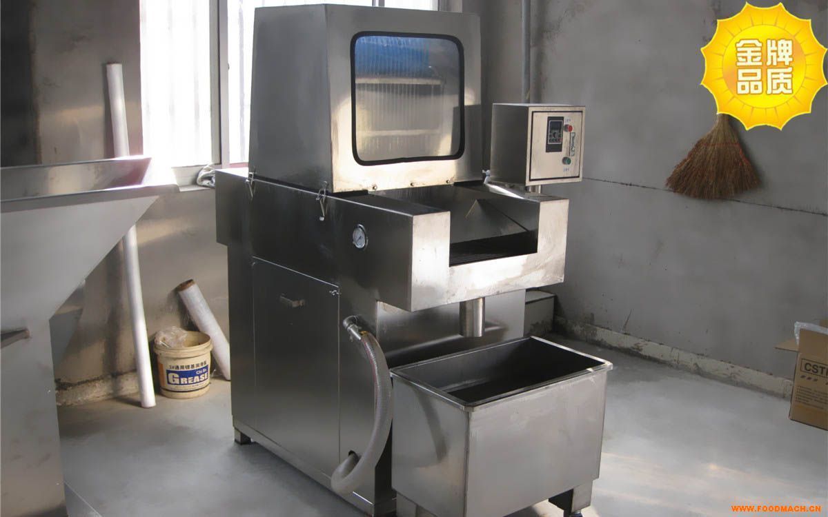 鹽水注射機結(jié)構(gòu)合理,結(jié)構(gòu)嚴(yán)謹(jǐn),操作方便,易清洗,清潔衛(wèi)生,配有自動保護裝置,當(dāng)注射針頭碰到硬物時注射針隨之彈起,不受損壞。是生產(chǎn)火腿肉,烤肉,牛肉,雞,鴨等主要設(shè)備,在肉中注射混合鹽水的一種設(shè)備,各種肉經(jīng)過鹽水混合液注射均勻滲透,柔軟味鮮,又能增加出品率。