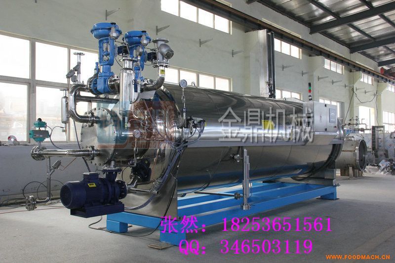 臥式單層多用途殺菌鍋牛肉殺菌鍋在罐藏食品高溫殺菌工作過程中,殺菌的主要對象是肉毒芽孢螺旋桿菌,此種菌能產(chǎn)生對人體造成致命傷害的毒素,其屬耐熱性厭氧菌,在121℃環(huán)境中三分將鐘將失去生物活性,在100℃環(huán)境中6個小時左右失去生物活性。當(dāng)然,溫度越高,該病菌存活時間越短。經(jīng)科學(xué)檢測,在121℃時殺菌較為適宜,此時包裝物有很好的耐熱性,而且食品口感也較為良好。121℃殺菌時,食品中心F值達到4,食品中就不會檢測出肉毒芽孢螺旋桿菌,達到了商業(yè)無菌的要求。