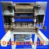 仿手工面條機(jī)注意事項(xiàng)和安全生產(chǎn):1.本機(jī)應(yīng)按放在室內(nèi),場所清潔明亮,自然通風(fēng),不潮濕.2.使用前應(yīng)將機(jī)器穩(wěn)定,接上接地線.3.除去防塵塑料膜,放松輥軋間隙,清除一切雜物,檢查各部位聯(lián)接螺栓是否松動,松動的要緊固.4.清除齒輪上及齒合部分的一切雜物,加涂潤滑脂或機(jī)械油,有油標(biāo)的、油杯的要加入30#機(jī)油.5.皮帶的松緊要適中,不可過緊或過松.6.轉(zhuǎn)動方向要與箭頭指向一致(指皮帶輪).7.試機(jī):空車轉(zhuǎn)動30分鐘,本機(jī)有正常噪音,如發(fā)現(xiàn)有不正常聲音立即停車排除,更不準(zhǔn)帶病運(yùn)轉(zhuǎn),一切正常方可進(jìn)行正式生產(chǎn).8.操作人員著裝必須扣袖工作服,長發(fā)、紗巾、領(lǐng)帶必須收起以免卷入軋輥內(nèi)造成人身事故.9.面粉和水的配比為100面粉:20左右水,拌好的面胚為松散顆粒狀.10.壓輥間和面粉中不得有任何硬質(zhì)雜物,加工前必須清理凈,各齒輪上下不能掉入任何雜物.11.不準(zhǔn)將手伸入運(yùn)轉(zhuǎn)的拌面機(jī)或軋輥中間.12.本機(jī)主要零部件已調(diào)整完畢,切刀不可倒轉(zhuǎn),切刀袖套間木契不可脫落.常見故障與排除:1.面板跑邊或面板兩邊薄厚不均,是由于對輥兩端間隙不一致造成,調(diào)整一致即可.2.面板及面條是曲波形,是輥下刮及切刀梳刀安裝角度過大造成,調(diào)整到位即可.3.面板沾輥,是因?yàn)槊媾咚诌^大或刮刀螺栓松動引起.使用保養(yǎng):1.各部位油標(biāo)、油杯、切刀底油孔、切刀齒輪齒合部每班加注兩次,30#機(jī)油.2.停機(jī)時(shí)間計(jì)劃超過48小時(shí)或停用更長時(shí)間軋輥表面和切刀表面應(yīng)涂少量用油,并采取防塵措施.3.下班停車時(shí)應(yīng)保持清潔,輥間無殘存面胚.
