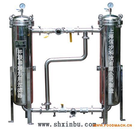 本司設備全部采用不銹鋼制造,是二個過濾器組成,內外表面拋光,頂部裝有排氣閥,以便工作時排氣之用。管道接頭采用快接,經(jīng)0.3Mpa水壓試驗,三通外螺紋旋塞啟閉靈活,該設備結構緊湊,操作方便,維修簡單。