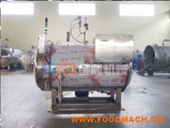 一般罐頭食品廠對罐頭作常壓水煮加熱殺菌處理時都采用本形式的臥式殺菌鍋,本設備通過引入壓縮空氣可實現(xiàn)反壓殺菌。如冷卻需在鍋內(nèi)進行,須用水泵打入鍋頂部的噴水管(或采用水循環(huán)系統(tǒng))。