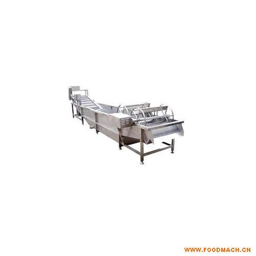 大蒜破瓣脫皮后,進入大蒜沖浪漂皮機進行漂皮處理,本機工作原理:原料從中部進入裝滿水的網(wǎng)鏈帶上,下部的汽泡管網(wǎng)噴出汽泡將物料托起懸浮在水中,一端的強水流沖出浪濤,將蒜皮沖掉,網(wǎng)鏈帶著蒜仁從另一端送出,達到徹底脫皮的目的。一般的脫皮率在90%以上,出料后進入選別帶人工選別。 功能:漂皮、脫皮、清洗; 外形尺寸:6500*1200*1300mm 配用動力:網(wǎng)鏈0.75kw+括輪0.55kw+汽泡2.2kw+沖浪3kw 產(chǎn)能:1000-2000kg/h |